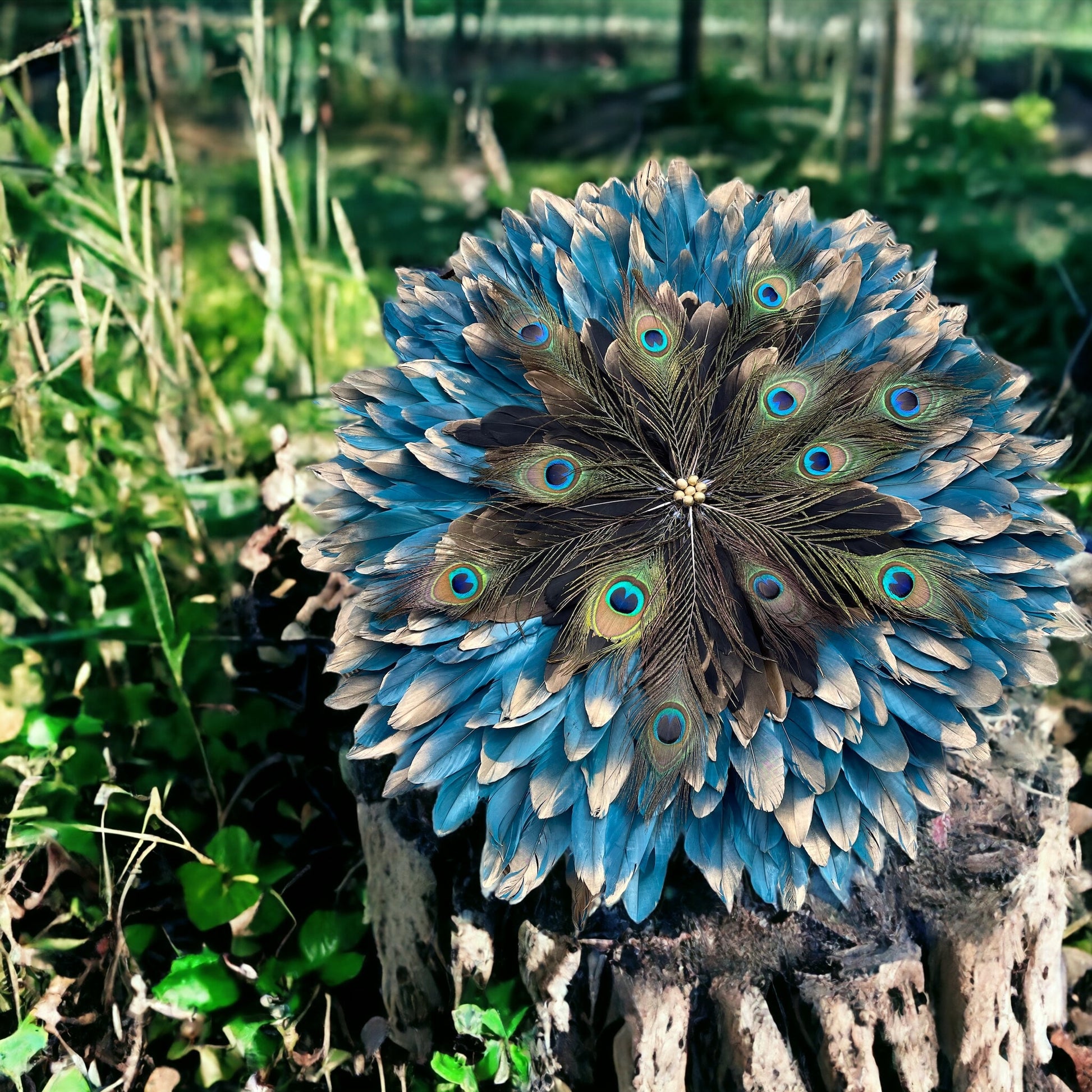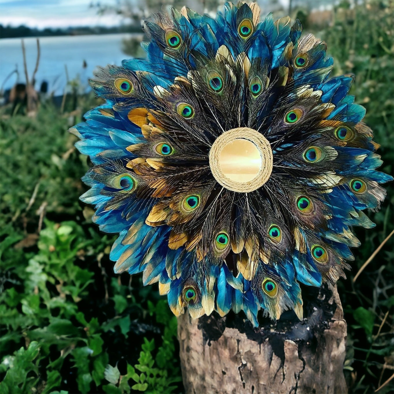 Matériel : plumes d’oie, plume de paon, miroir ou perle doré, corde de jute ou non